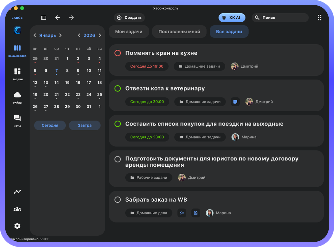 - Создание и назначение задач исполнителям