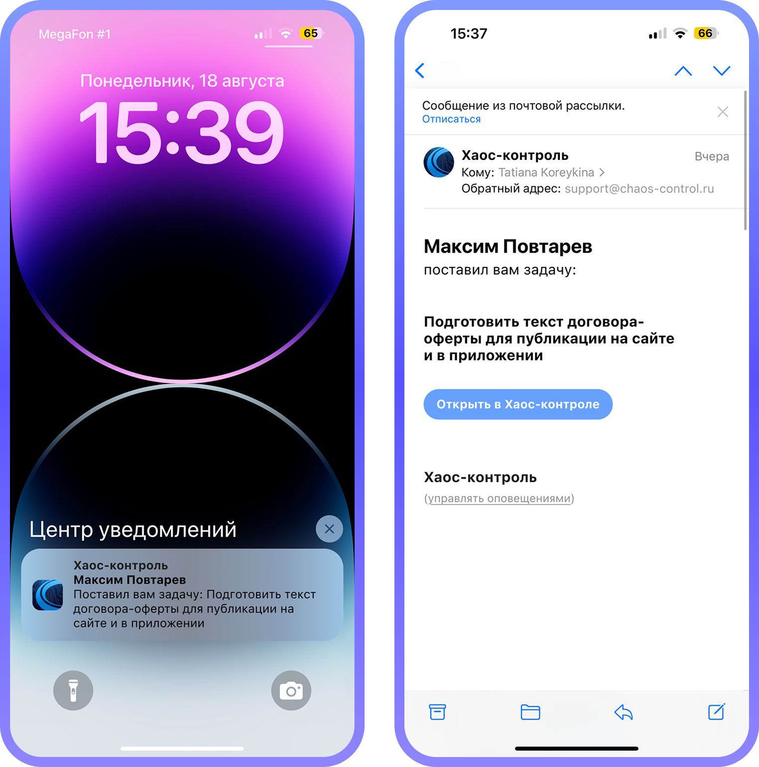 Также при создании/изменении задач исполнителю и админу будут приходить уведомления на email: