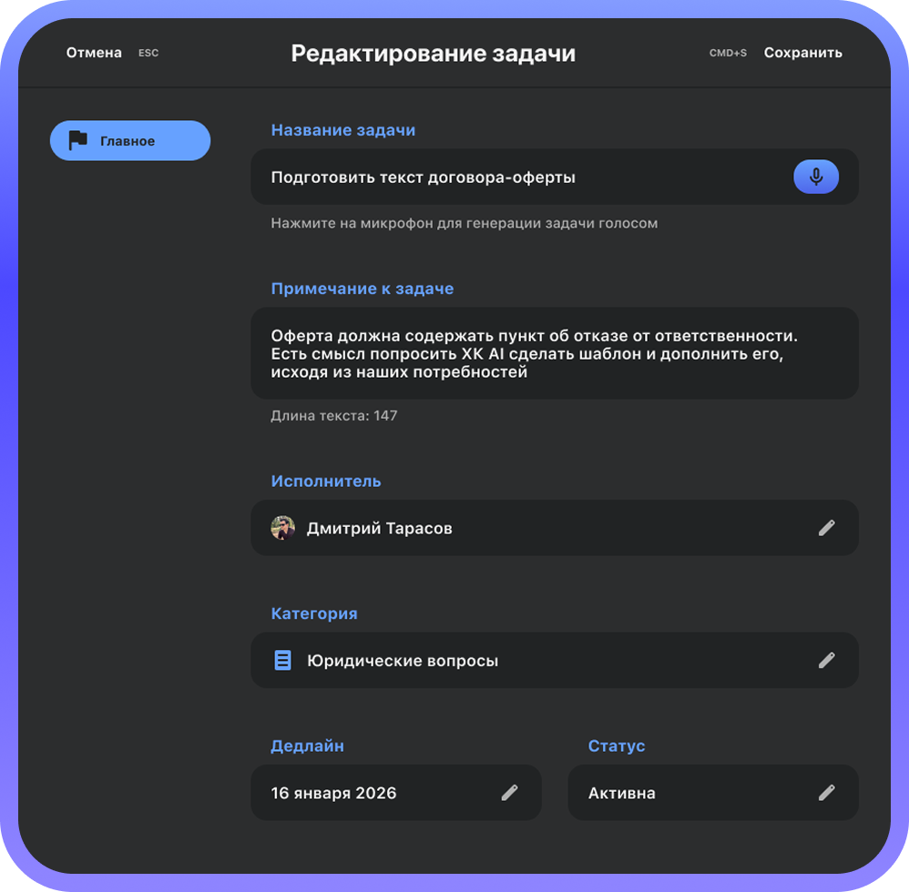 - ХК AI для создания задач голосом с автоматическим добавлением необходимых материалов