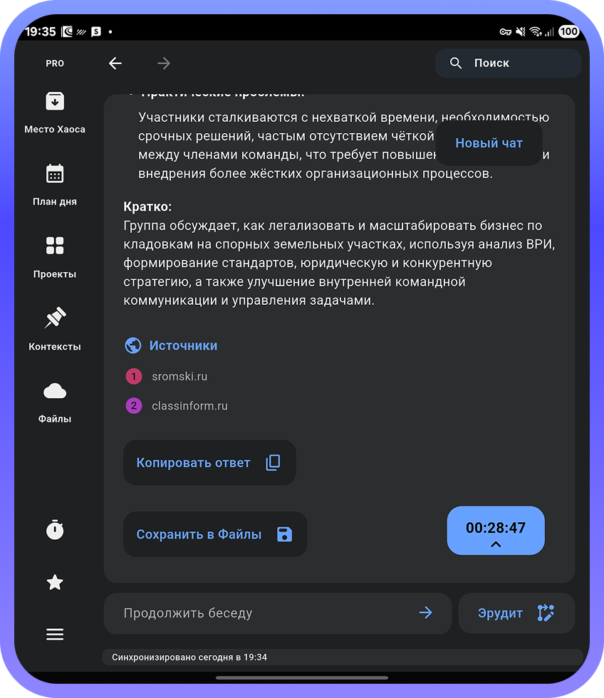 Автоматическое создание саммари непосредственно из аудио-заметки - это хорошо, но также вы можете передать транскрипцию разговора в ХК AI (в том же диалоге есть соответствующая кнопка) и сопроводить ее дополнительными указаниями. Например, попросить ХК AI предложить решения обсуждаемых вопросов и сделать дополнения, если в разговоре не учтены какие-то аспекты.
