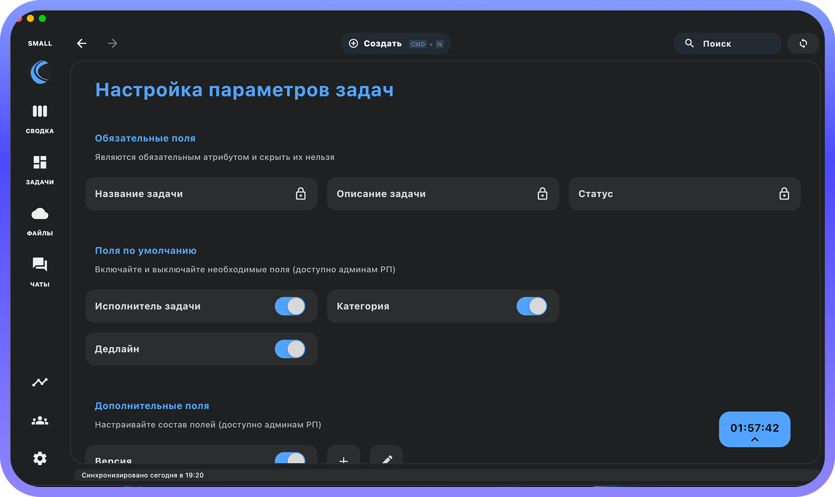 Теперь админы рабочего пространства могут настраивать какие поля должны быть у задач: